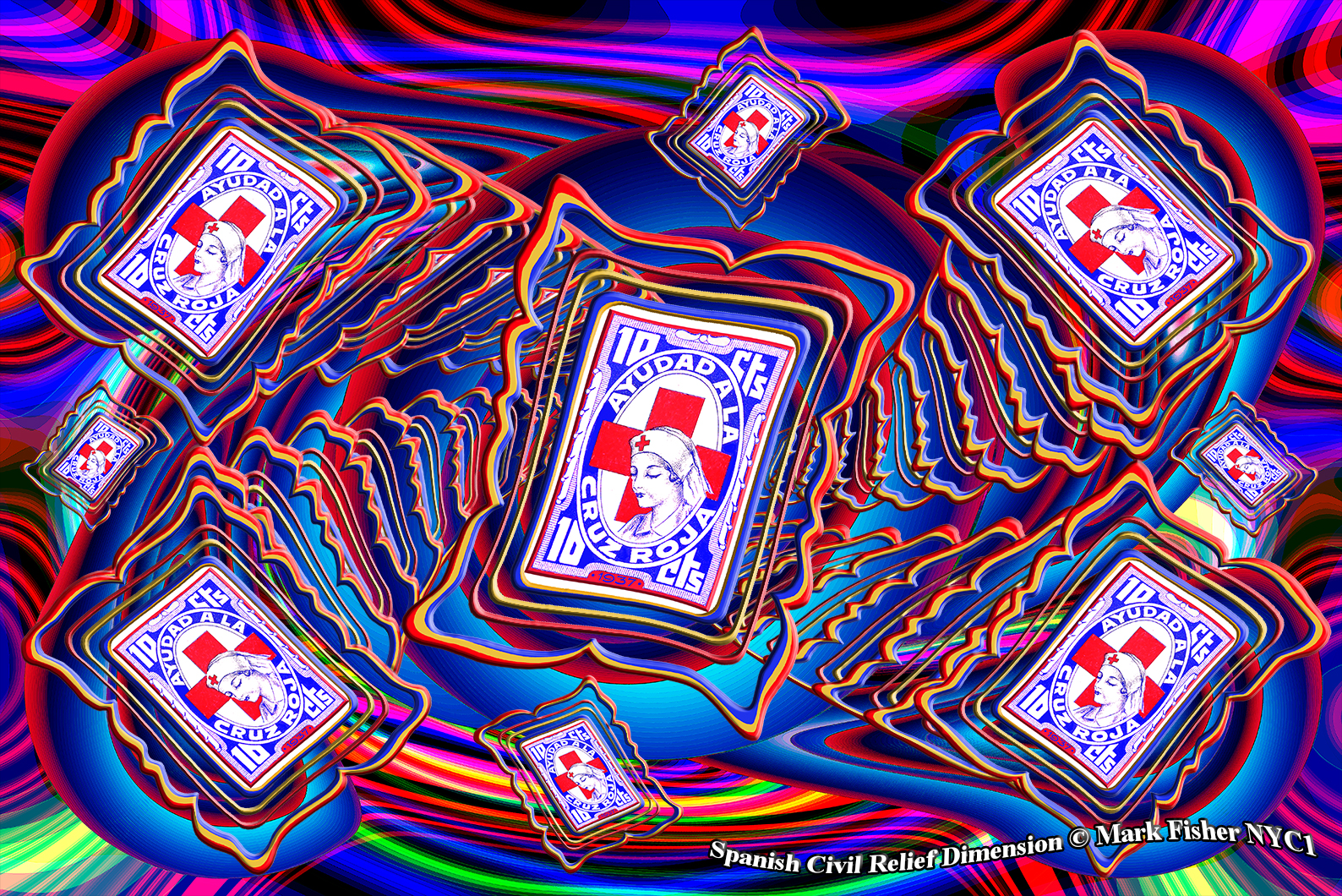 Spanish Civil Relief Dimension • Mark Fisher Photo • Red Cross Postage Drive Cinderella
